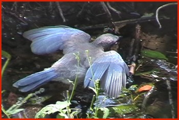 When a Scrub jay has just left the nest, it has a unique behavior. It will vibrate it's wings and let out a long screech when it wants to be fed by the adults. This is a mpg movie with sound.
