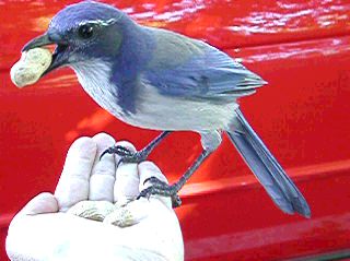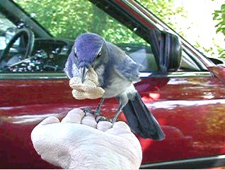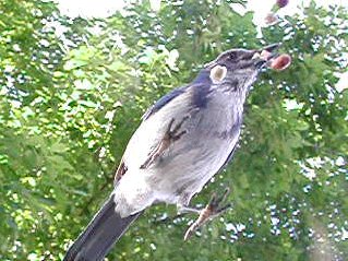 Playing Time -11 seconds File Link TwoPeanuts.mov There seems to be some genetic code within a Scrub Jay that says "If there are two peanuts, I must try to get both". Skippy eventually gets both peanuts in this clip.